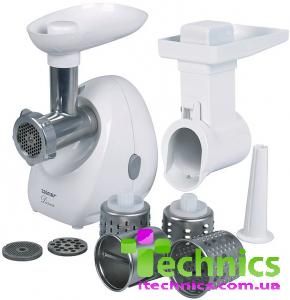 Мясорубка ZELMER 886.84MP. Мощность: 1400 Вт. Производительность: 1,5 кг/мин. 2 решетки диаметром отверстий 4 мм и 8 мм, предназначенные для различных способов рубки. 4 барабана для нарезки овощей (для нарезки пластинками, для протирания, для стружки, для натиранния). Насадка для домашней колбасы. Система защиты от перегрузки предназначена для защиты электромотора от перегрева и позволяет продлить срок его эксплуатации.