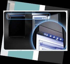 Современный синий светодиодный дисплей удачно вписывается во внешний вид корпуса, делая дизайн более привлекательным и практичным. На его удобном для чтения экране можно контролировать температуру и режимы холодильника, даже не открывая дверь.